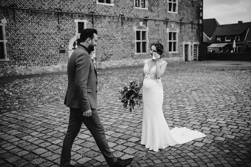 Wir haben entschieden uns bei der standesamtlichen Hochzeit zuhause voneinander getrennt fertig zu machen und uns das erste Mal an unserer Hochzeitslocation zu sehen. Für uns war es der perfekte Ort: Foto-, Trau- und auch Feierlocation in Einem. So haben wir uns unendlich viel Fahrerei gespart und hatten mehr Zeit für die wichtigen Momente.