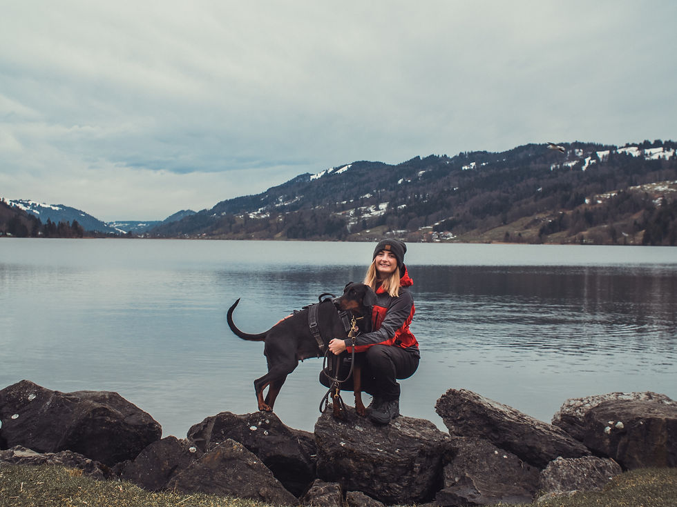 Umgeben von Wiesen, Wäldern und Bergen liegt der größte Natursee des Allgäus. Mit einem Umfang von 8.1 km ist er der größte Natursee des Allgäus. Vom kostenpflichtigen Parkplatz des Alpseehauses haben wir unsere kleine Tour gestartet und hatten nach allen 100 Metern einen anderen Blick auf das Naturwunder. Auf dem Weg weiter befinden sich viele Badebuchten sowie große Liegewiesen zum Sonnen. Auf dem Weg in Richtung Trieblings, der Südseite des Sees befindet sich der FKK Badeplatz. An der Seepromenade entlang liegen in Richtung Trieblings mehrere Restaurants, ein Kiosk und eine Eisdiele. Auch eine Strandbar (Café Seeblick) gibt es direkt am See. Der Große Alpsee ist nicht nur im Sommer für Segeln, Surfen und Kiten beliebt, sondern auch im Winter hat man viele Freizeitmöglichkeiten. Wenn der Alpsee zugefroren ist, kann man dort auf dem Allgäu See Schlittschuh laufen oder Eishockey und Eisstockschießen spielen. Ayla habe ich so gut wie immer frei laufen lassen. Der Spazierweg neben befahrenen Gleisen ist teilweise umzäunt und kann gut genutzt werden, um den Hund frei laufen zu lassen. Später aber hört der Zaun leider auf und man hat direkt neben dem Spazierweg die Gleise ohne Abperrung. Da bitte auf Kinder und Hunde aufpassen!